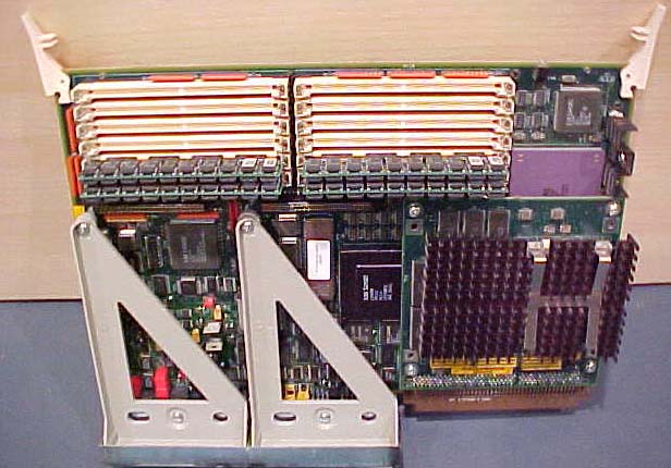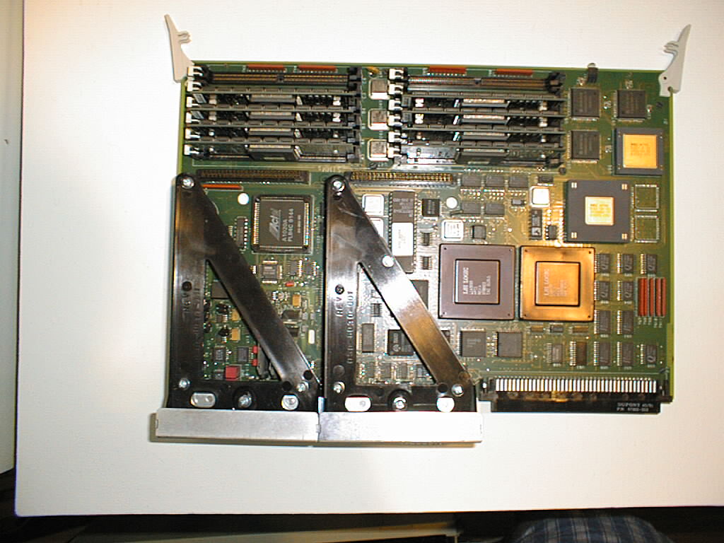 ). The Indigo 2 and Indy using a similar board, the differences are only the expansion port (GIO64) and the backplane (EISA) as well as the form factor. The IP20 takes standard 72 pin PS/2 Simms with true parity. The Simms are labelled S1A-S4A, S1B-S4B and S1C-S4C. It can hold up to 384MB of memory. Since the Processor is on an own modules, it is upgradable. There are three different processor modules (PM). The standard configuration was the R4000 with 100MHz (PM1). Later SGI made an upgrade offer with a R4400/150MHz (PM2) (