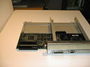 | Front shot of an Elan board set Left top: Z-Buffer board Three upright SIMMS: VM1 Framebuffer memory modules Right top: Image generator board (CMAP, RAMDAC, etc)