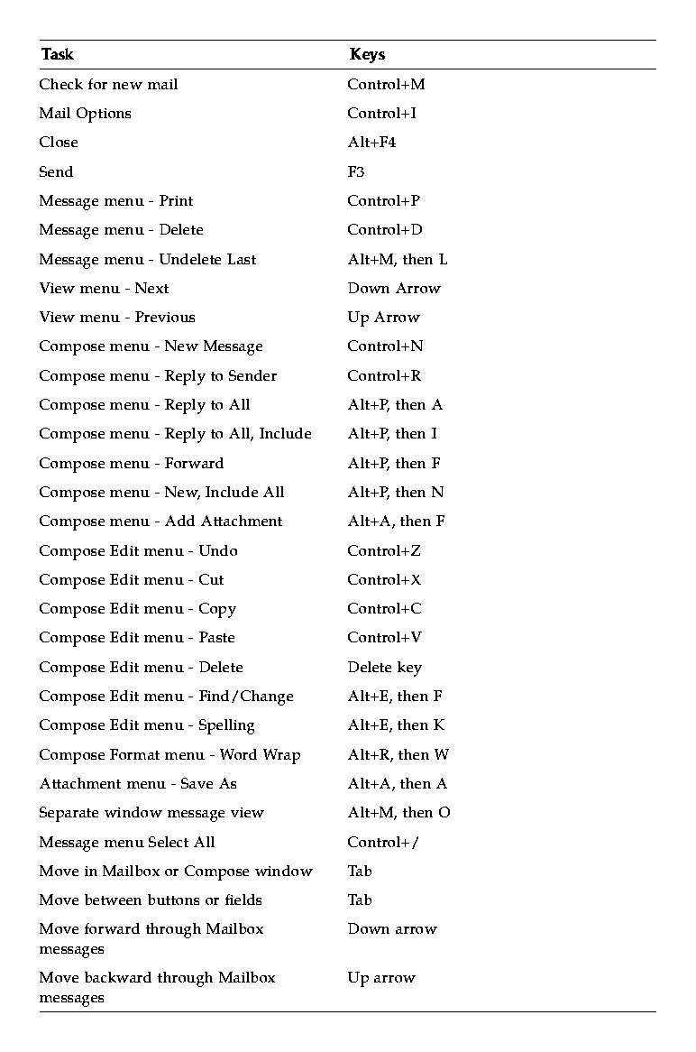 - Mailer Keyboard and Menu Shortcuts