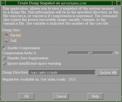 Applications for configuring and creating crash dumps are available from the SysMan Menu:
