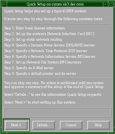 An explanation of the system setup utilities that are displayed automatically during the first root login to a system, that is, after a full installation (Section 1.3)
