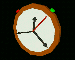 A set of TimeSensor nodes watch the time A set of OrientationInterpolator nodes spin the clock hands [ stopwtch.wrl ]