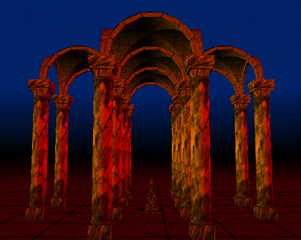 A Background node creates a sky gradient A Sound node creates a spatialized sound effect A set of Viewpoint nodes provide standard views [ temple.wrl ]