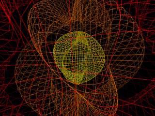 Multiple IndexedLineSet nodes create wireframe isosurfaces A Fog node with black fog fades out distant lines for depth-cueing [ isoline.wrl ]