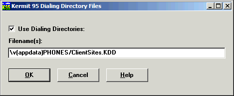 The K95 Dialer keeps a database of connections, which you can modify by adding, removing, or changing entries. When you want to make a connection, the Dialer generates a command file, or script, composed of Kermit commands (as documented in Using C-Kermit) and starts the K95.EXE program (Windows) or K2.EXE (OS/2), telling it to execute this script.