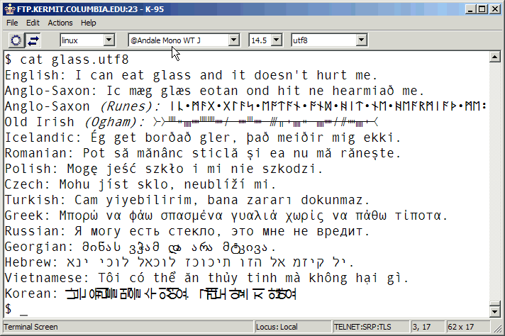 Kermit 95 is primarily for accessing text-based computers and services by dialup, direct serial connection, or network. Kermit 95 is like a VT100 terminal (or any of the dozens of other terminals that it can emulate), but with the added ability to transfer files back and forth and to automate any or all phases of a communication session, plus numerous comforts like key mapping, screen scrollback, and color selection. On the Internet, K-95 is a Telnet, Rlogin, FTP, and HTTP client with the ability to make secure connections. In Windows (not OS/2), it is also an SSH client. Furthermore, since Kermit 95 runs in a window of your PC desktop, it can interact with other PC applications by copying and pasting, clicking on "URL hotspots", and so on.
