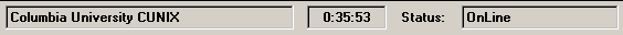 The Status bar at the bottom of the Dialer window gives you several bits of information about your current connection (the one whose name is highlighted in the Dialer's main window): its name, how long you've been connected (this helps you adjust your online time to fit your budget in case you're paying by the minute), and at the right, a word or two about what's going on at the moment (Online, Disconnected, etc). The status bar is "read-only."