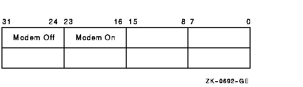 The modem on and modem off fields, in combination or separately, can specify one or more of the following values: