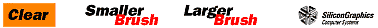 Specify the size of the painting window with the<applet code="Impression.class" width=400 height=430> <param name="source" value="mypicture.gif"> <blockquote> Sorry! This application will only appear in browsers that support JAVA!<br>Get the new version of Netscape 2.0b3 when you can! </blockquote> </applet> <br> <br> <a href="http://reality.sgi.com/grafica/impression/imphelp.html"> <font size="1">H E L P</font></a><br> <br>widthandheighttags. The size of the painting window can be larger or smaller than the source image you provide. The actual height of the painting area will be 30 pixels less than the given height, since a menu is drawn at the bottom of the window.Be careful not to make the width less than 295 pixels, otherwise your users won't be able to change the brush shape.