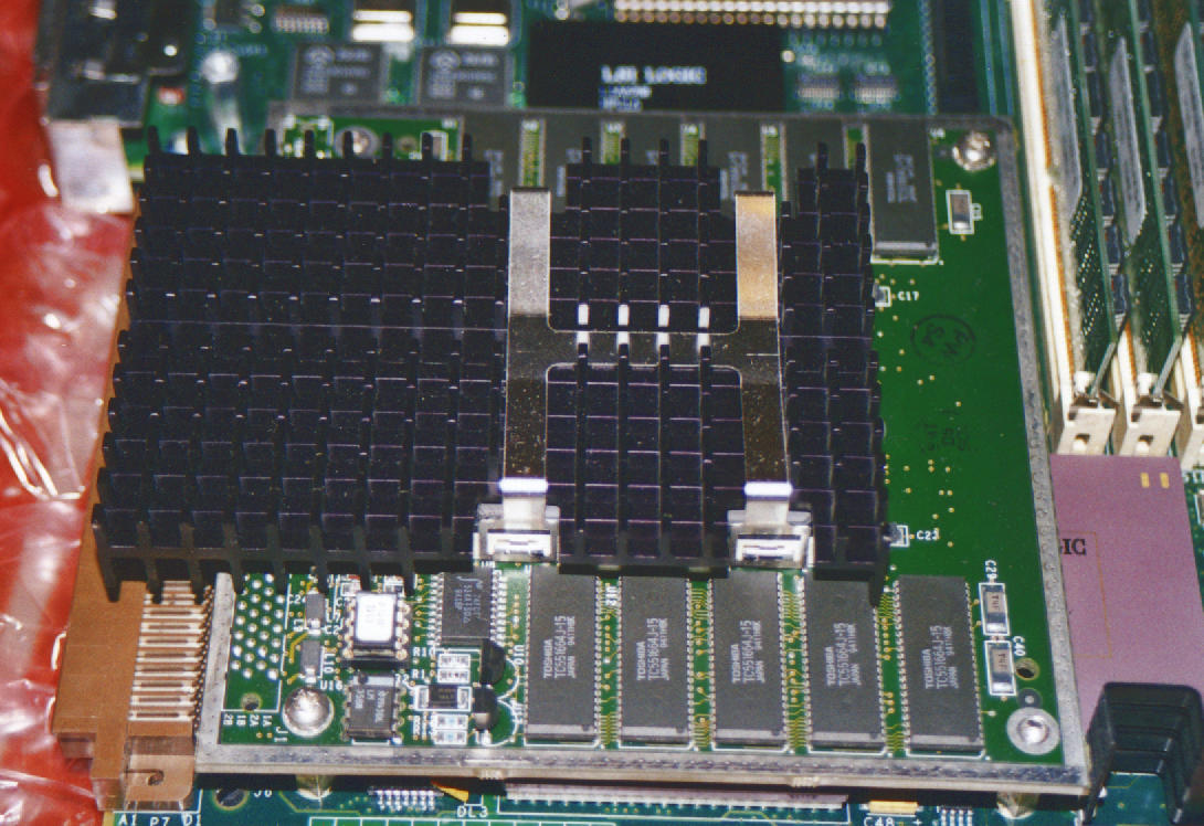 | R4400 processor with the heatsink from a r4k, two additional ethernet cards installed.