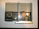 | Front shot of an Elan board set Left top: Z-Buffer board Three upright SIMMS: VM1 Framebuffer memory modules Right top: Image generator board (CMAP, RAMDAC, etc)