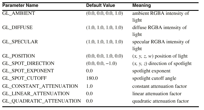 with glEnable(). (See "Enabling Lighting" for more information about how