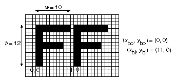 glBitmap (10, 12, 0.0, 0.0, 11.0, 0.0, rasters);