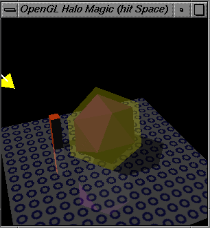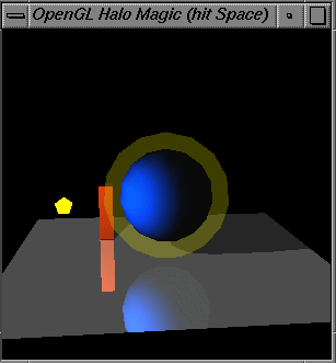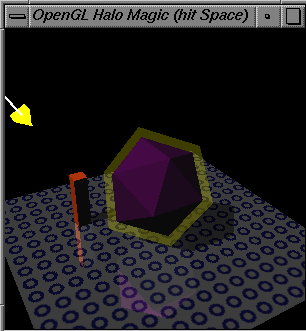 The complete demonstration program follows, or down load halomagic.c directly. Mesa users are warned that Mesa 2.2 requires a Mesa 2.2 patch in able to successfully run this program.