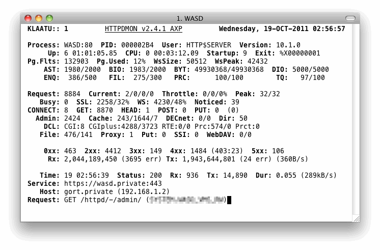 Process: WASD:80 PID: 24400436 User: HTTP$SERVER Version: 10.0.0