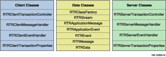 Table 1-1 shows application class categories and their descriptions. Table 1-2 lists the application data classes that are common to both client and server applications. Except for data classes, the class categories describe the characteristics of the associated client and server classes (for example, the Transaction Controller class category in Table 1-1 describes the RTRServerTransactionController and RTRClientTransactionController classes). For detailed descriptions of individual foundation classes and their associated methods, see the Application Classes chapter of this manual.