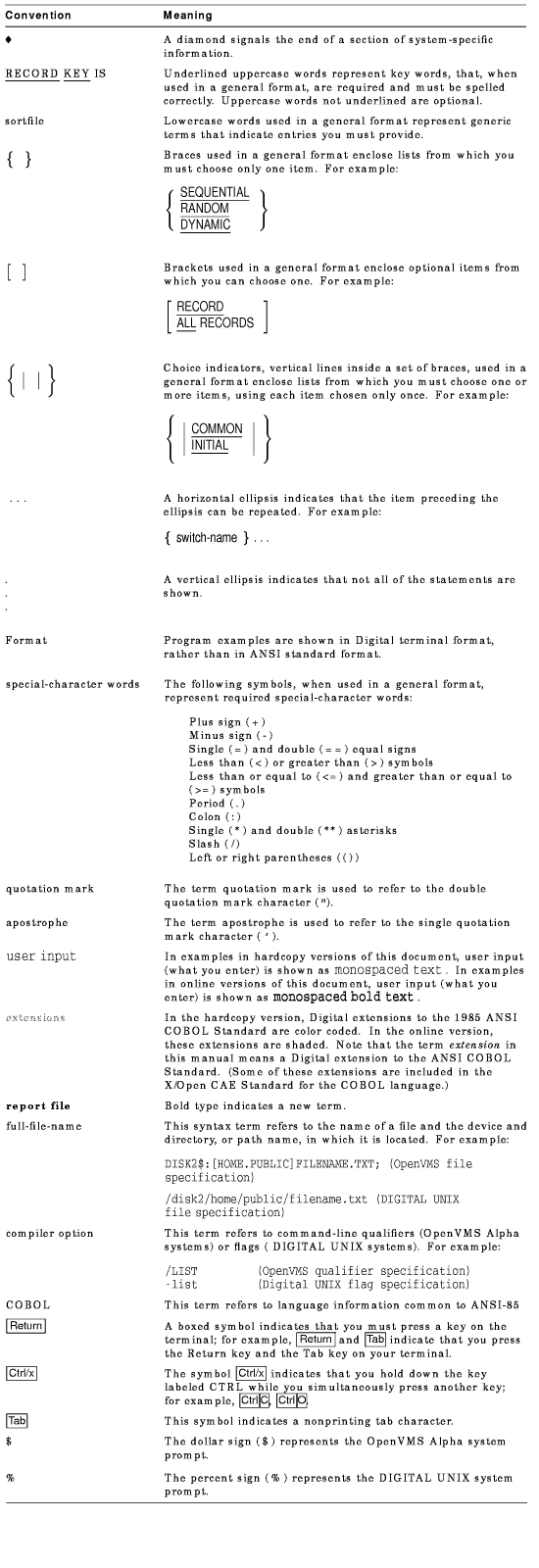 Revision/Update Information: This manual supersedes the Compaq COBOL Reference Manual, Version 2.7 and the VAX COBOL Reference Manual, Version 5.4, as well as the online-only Compaq COBOL Reference Manual, Version 2.7 and Version 5.7.