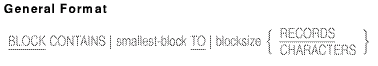 On OpenVMS Alpha systems, the BLOCK CONTAINS clause specifies the size