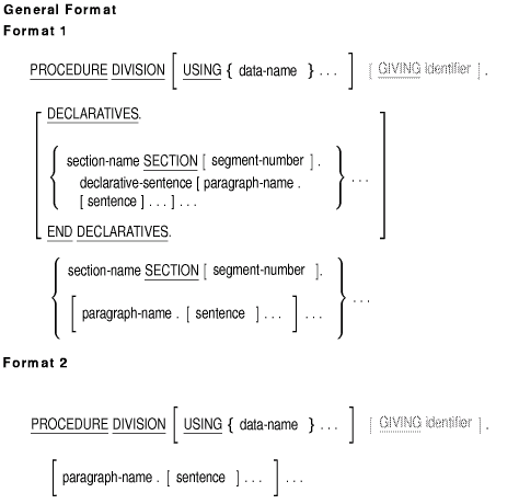 - A procedure-name refers to a paragraph or section in the source