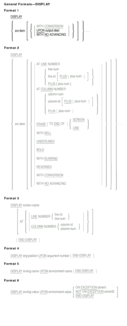 DISPLAY statement. The Compaq extensions to Formats 2 and 3 are