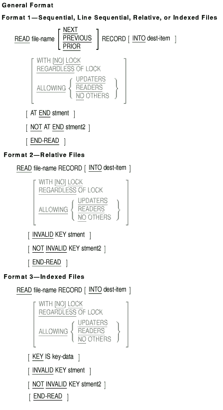 - For an indexed file, a Format 2 READ statement with the KEY phrase