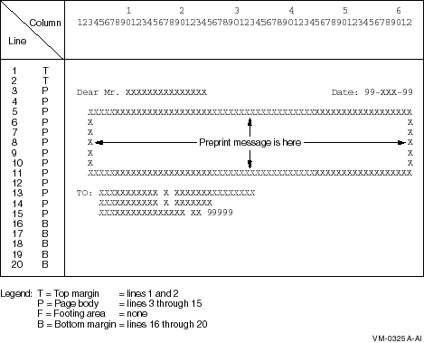 Figure 10-8 shows a 20-line logical page that includes a top margin (T), a page body (P), and a bottom margin (B).