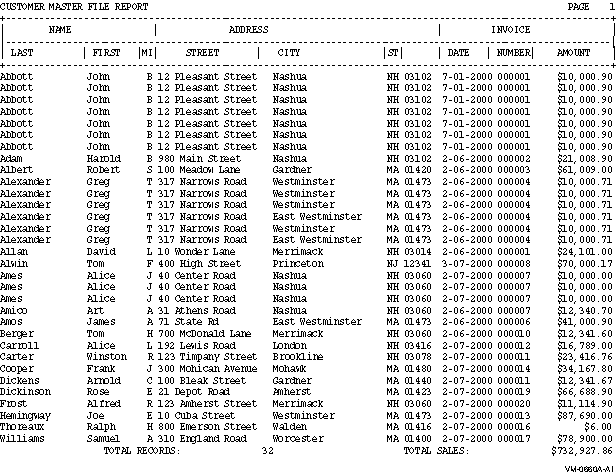 The next two examples are nearly identical programs; the only difference is the use of the GROUP INDICATE clause in the second example.
