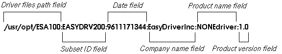 In the device driver kits delivery process, the kreg utility sets up the .product.list and NAME.list files on the customer's system. Although third-party driver writers and kit developers do not supply these files, it is useful to understand the files' format. Figure 13-1 shows the format of such a file for EasyDriver Incorporated.