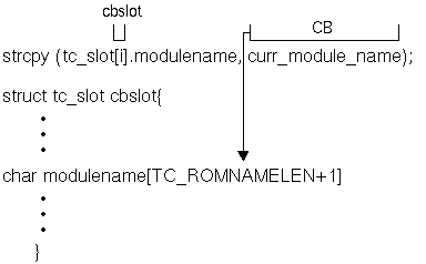 struct tc_slot tc_slot[TC_IOSLOTS]; [1] char curr_module_name[TC_ROMNAMLEN + 1]; [2]