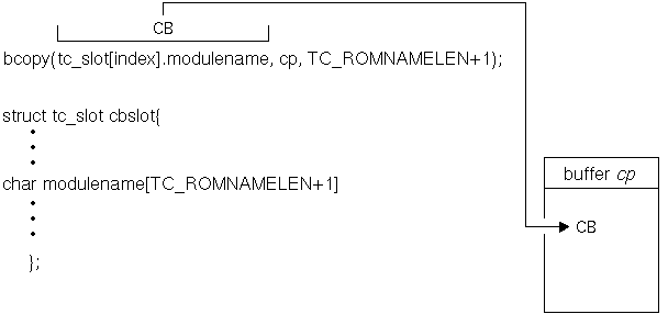 bcopy(tc_slot[index].modulename, cp, TC_ROMNAMLEN + 1); [3]