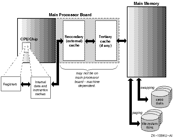 For more information on the CPU, secondary cache, and tertiary cache, see the Alpha Architecture Reference Manual.