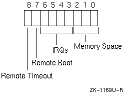 The Ethernet board can support interrupts on channels 5, 9, 10, and 11. The ECU initializes the configuration register in IOPORT(1) to indicate which IRQ has been chosen. For example, if IRQ 5 is chosen, bits 3 through 6 of IOPORT(1) are initialized with the bit mask 0001, as follows: