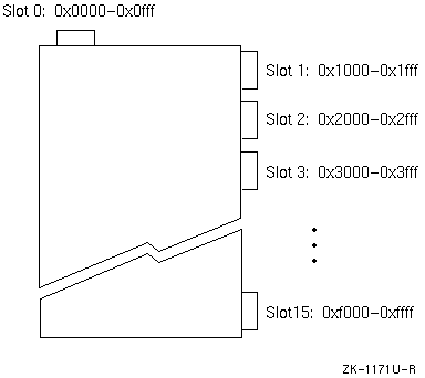 Some boards need additional memory for performing buffered I/O operations. The system treats the memory on all boards as one continuous address space. A memory map assigns address ranges to specific boards. You must define the size of memory space addresses (byte, word, or longword) and the type of memory (such as system, expansion board, or virtual memory) in the configuration file.