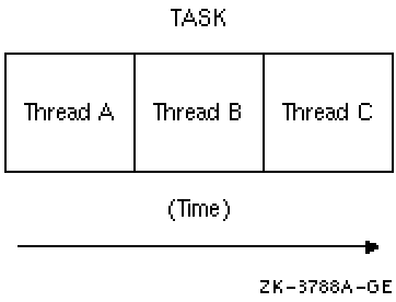 In a multithreaded program using the pipelining model, each thread executes a step in the task. Figure 1-5 shows a task performed by three threads in a pipelining model.