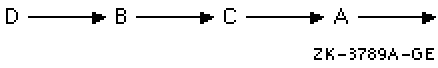 Thread D executes until it waits or terminates; then Thread B starts because it has been waiting longer than Thread C, and it executes until it waits or terminates; then Thread C executes until it waits or terminates; then Thread A executes.