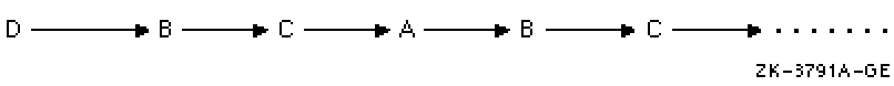 Threads D, B, C, and A are timesliced, even though Thread A has a lower priority than the others. Thread A receives less execution time than Thread D, B, or C if any of those are ready to execute as often as Thread A. However, the default scheduling policy protects Thread A against being blocked from executing indefinitely.
