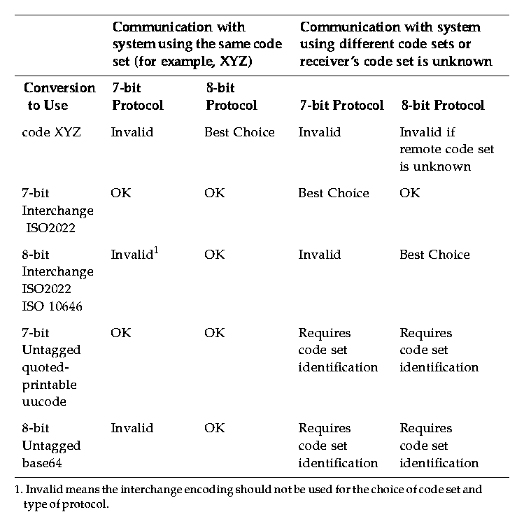 - If the protocol allows only 7-bit data, a 7-bit interchange encoding is needed, as is the identifying character repertoire.