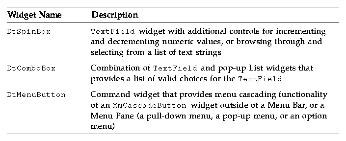 Note: The Common Desktop Environment supports all Motif 1.2 widgets. See Appendix A, "Common Desktop Environment Motif," for more information on Common Desktop Environment Motif.