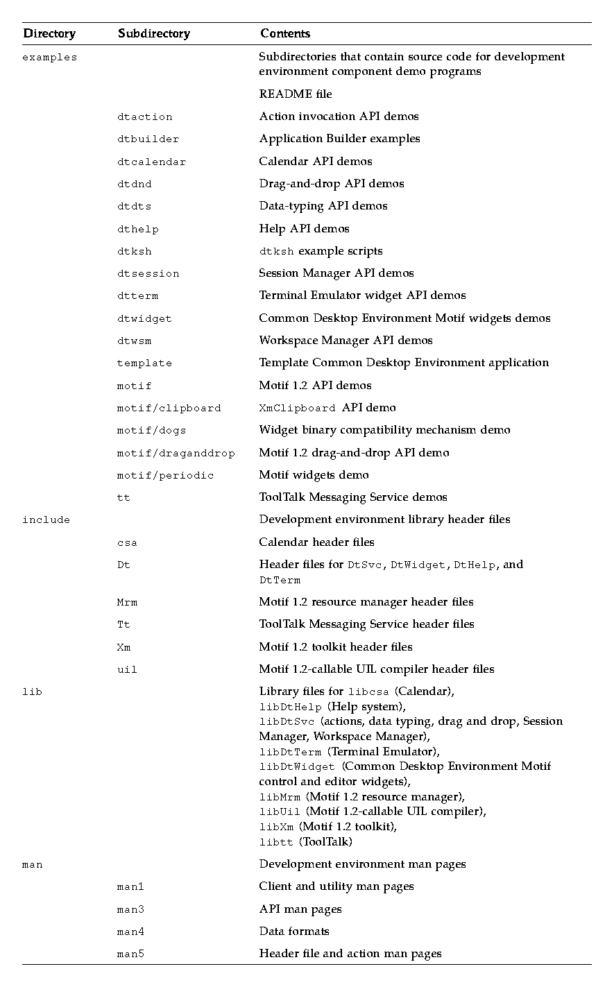 For a listing of the /usr/dt/man subdirectories and contents, see Table 2-2. For more information on the man() command, see the man(1) man page.