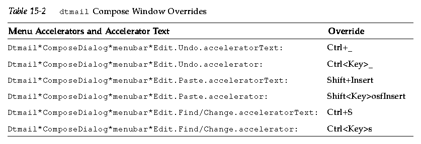 This chapter also describes how to specify style translations for DtEditor widget applications such as the desktop text editor (dtpad) and Mailer (dtmail), and alternates for DtEditor widget application menu accelerators that conflict with these translations.
