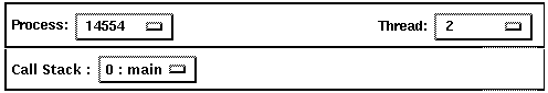 The Source View Context Panel has pull-down menu buttons that allow the user to select a process or thread to be displayed in the Source View or to replace the currently displayed process or thread with a different process or thread.
