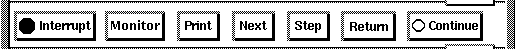 Push buttons in the push-button panel control common operations: by clicking on a button, you can start execution, step to the next source line, display the value of a variable selected in a window, interrupt execution, and so on.