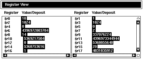 Register  Modify...   Changes the value of a selected register (see Section 4.7).