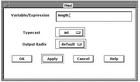 The Print dialog box allows you to request typecasting or an altered output radix in the displayed result.