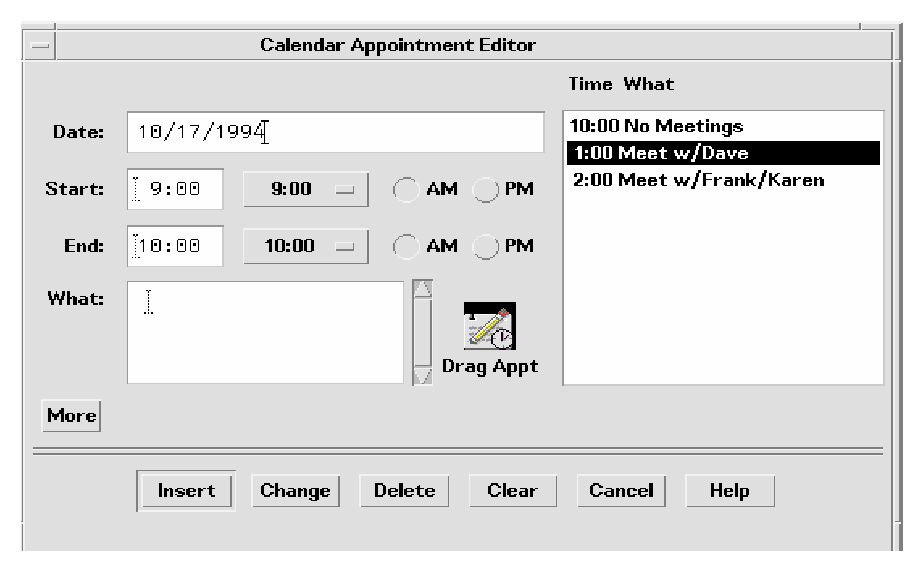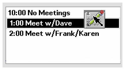 In cases where the user does not select an icon to start a drag, it is still appropriate to show a relevant graphic in the drag icon especially if that graphic will be used by the destination application upon drop. For example, in Calendar Appointment Editor, the user can select an appointment from the scrolling list, which does not show icons. An appointment icon is used as part of the drag icon. If the appointment were dropped on File Manager, File Manager would display the appointment using the same graphic.