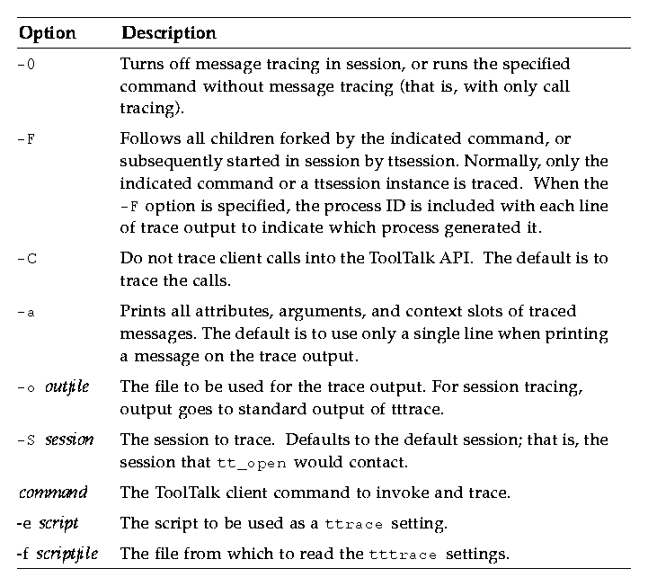 Table 4-3 tttrace Options