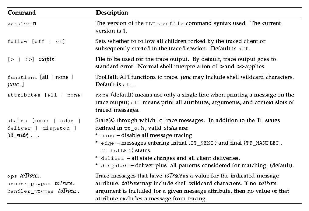 Table 4-3 describes the tttrace options.