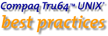 Help us build and expand the Tru64 UNIX Best Practices Web site by sending us your suggestions regarding Best Practices documentation in Compaq, and specifically how your area or group is addressing the topic. We are interested in approach, content, presentation, content, topics, and other pertinent information.