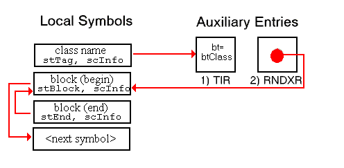 Uplevel links for referencing local symbols in an outer scope (see Section 5.3.4.4)